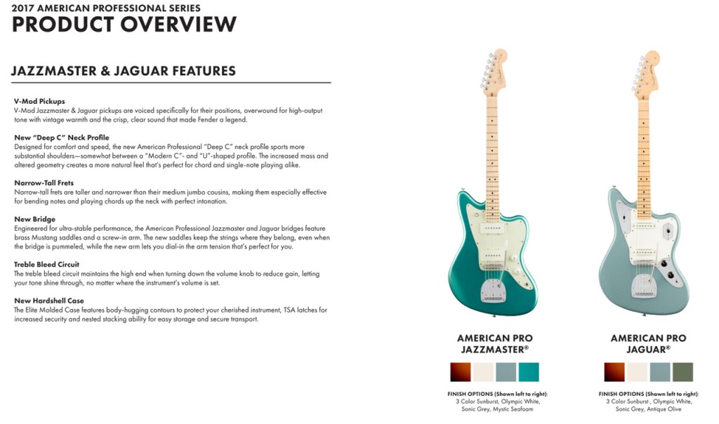Note: The image above shows the new Jazzmaster alongside the new Jaguar, which is also being introduced with the American Professional series. Click the image for larger size.