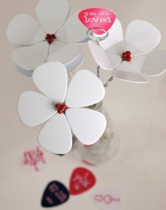I think this is a neat idea that makes for a unique gift. In addition to flowers, the Flowers That Rock Etsy store has earrings and keychains made out of picks.