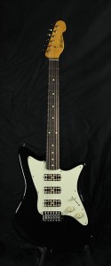 The guitar includes three gold foil-style pickups from Klein Pickups and a Strat-style bridge/tremolo. The guitar can be ordered with other pickups, as well.
