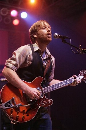This is a photo of Dan Auerbach from the Black Keys playing at last year's Bonnaroo Music and Arts Festival. Dan has some of the coolest vintage guitars. The one he's playing below is a Harmony H76 Thinline. The photo was taken by Jeff Christensen/Associated Press.