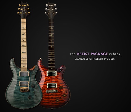 PRS Guitars has re-introduced the Artist Package, an upgrade package that provides an even higher grade of wood than their 10 tops, select mahogany backs, and Mexican Ebony fingerboard, among other options. You can also choose from their highly-regarded 57/08, 59/09, or 53/10 pickups, gold, nickel, or hybrid hardware, and new artist bird inlays. The Artist Package guitars come standard with PRS's V12 finish and an Artist Package case. You can buy the Artist Package on the following guitars: Custom 24, Studio, P22, 513, SC58, McCarty 58, Hollowbody II, and Singlecut Hollowbody II. Read more about the Artist Package on the PRS Guitars website.